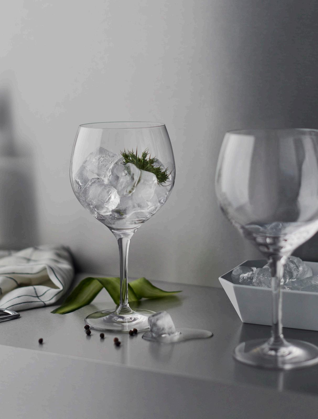 Few drinks can compete with the simplicity, refreshment and name recognition of a gin and tonic, . Although most often served as a highball in standard glasses, Aroma Copa Gin by Orrefors gives it the room and attention a proper G&T deserves. The glass is designed and developed in collaboration with Jens Josefsson – gin connoisseur and author of the book Swedish gin (”Svensk gin”) – and features a generous balloon-shaped cup to enhance the flavor experience, provide ample space for creative garnishes, keep the drink cold for longer, and offer an elegant presentation – qualities that have made this style of serving popular in bars and restaurants worldwide.