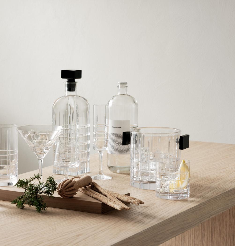 Manhattan is home to an enormous number of bars. Having a drink at rooftop bars, fine restaurants and neighborhood pubs has always been a natural part of life in the city. With the Street barware collection, Jan Johansson has merged Orrefors’ Scandinavian design tradition with inspiration from New York’s world-famous grid system of streets and avenues. The crisp purity of crystal permeates each glass, including options for champagne to cognac and – naturally – a dry martini. In addition, Street includes a decanter and ice bucket with black details to provide contrast to the clear glass. The collection launched in 2006.
