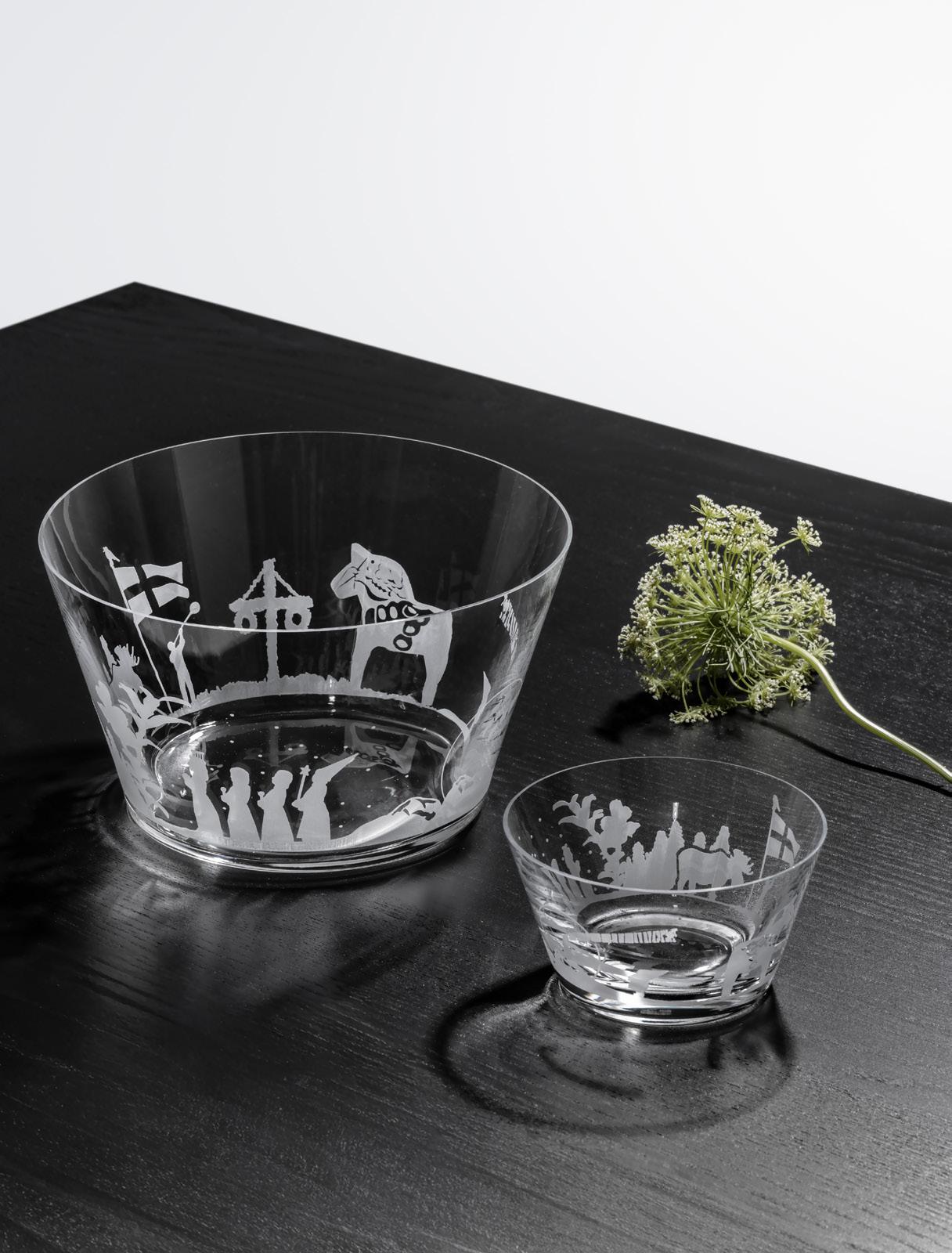 Stockholm, Gothenburg, Malmö… Silhouettes of famous urban landmarks, etched into the surface of the crystal, circle the wall of this small bowl.