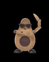 Woodies transform everyday objects into extraordinary handcrafted wooden figures with different details as arms and stylish sunglasses.