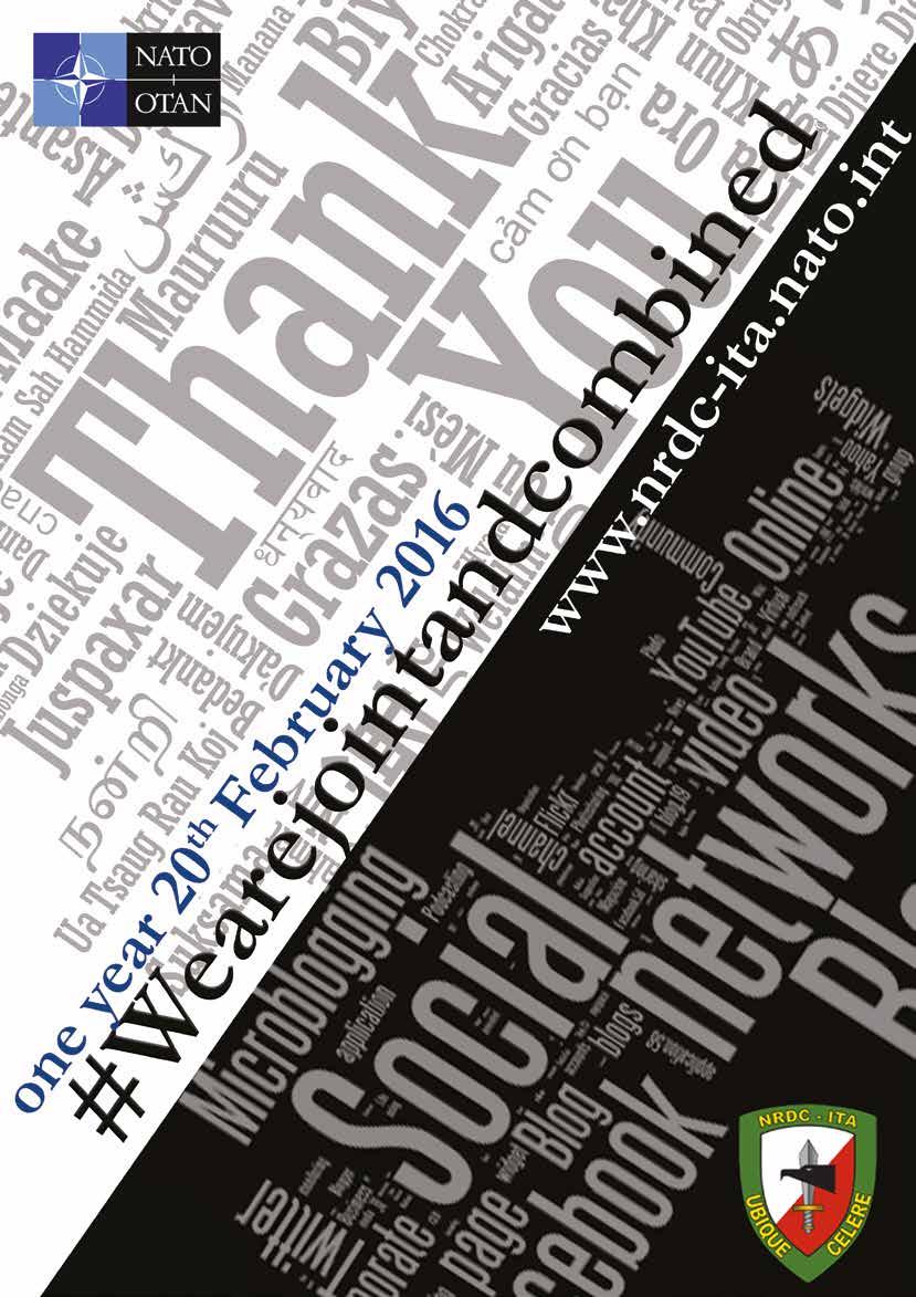 excellence in NATO as a 3-star HQ, NRDC-Italy is also very closely linked to the social and cultural environment of our wider community. Part of this is the embracing of the internet and social media as essential communication tools to effectively share timely and accurate information. In the past year we have totally revised our official website, and further opened our interaction on a number of social media platforms. Prioritising digital technology in this way has helped us to show our operational readiness and the capability of the HQ to be able to deploy to intervene rapidly anywhere in the world when called upon by NATO. Feedback and interaction from our audiences on these platforms allow us to better understand how we are perceived and thus provides an opportunity to refine our messaging. Whilst concentrating on the present tasks, we also look ahead to future professional challenges and consider how best to keep the NRDC-Italy community informed of our role, aims, operations and issues. Finally, I would address special thanks to the NRDC-Italy Public Affairs Office (PAO) staff, my “Ferrari” carlike team, who have made it possible to read this magazine. Thanks to the professional commitment of them all, without exception, NRDC-Italy PAO have managed to reach all of our assigned objectives – including many at very short notice! Thank you for your attention, I hope you enjoy this issue and I invite you to join us on www.nrdc-ita.nato.int, Facebook, Google+, twitter, YouTube and Flickr!
