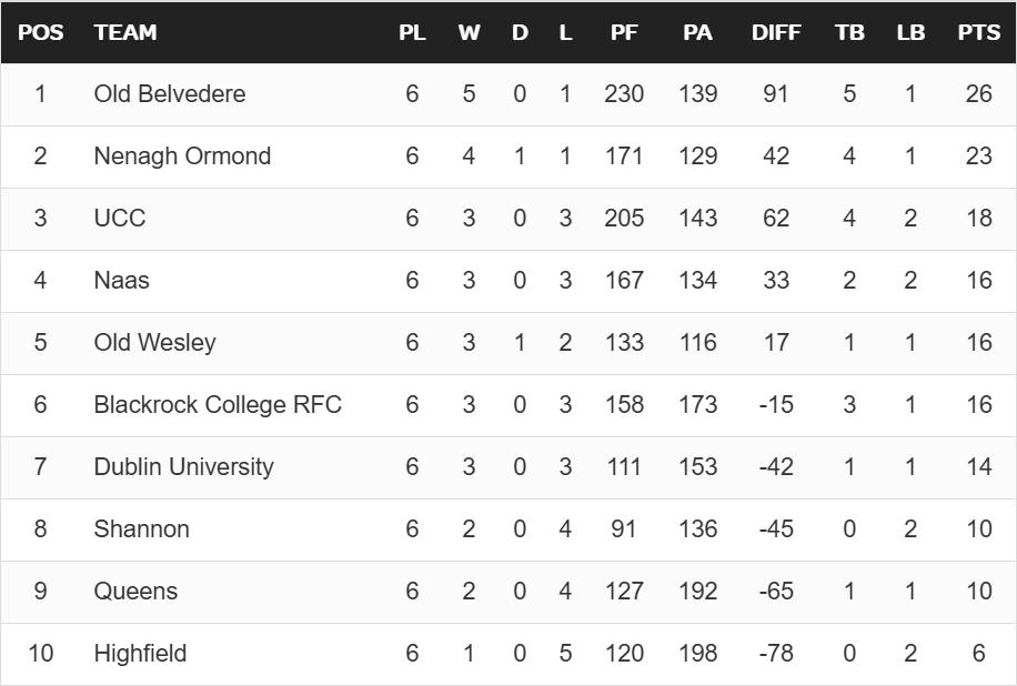 Both sides go into today's match with identical records in this season's campaign to date - three wins and three loses - and both have amassed 16 points to date Last Saturday we lost away to Dublin University, but almost overcame a 21-point deficit with just 20 minutes remaining and did extremely well to leave Dublin with a losing bonus point Blackrock College defeated Shannon by 24-10 in Stradbrook to register their third win of the season.