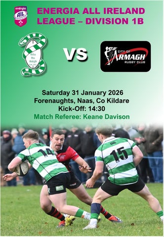 On behalf of Naas Rugby Club, it gives me great pleasure to welcome you all to Forenaughts for this afternoon’s Energia All-Ireland League Division 1B fixture