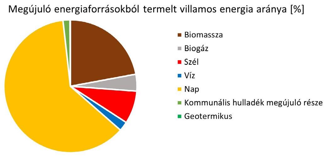 A megújuló energiaforrásokat tekintve a napenergia áll az első helyen. A napelemek beépített teljesítménye tavaly több mint 1.600 MW-tal bővült, így a napenergia 38%-os növekedést követően 6.537 GWh-val járult hozzá hazánk ellátásához. Az országban tavaly előállított összes villamos energia 18,7%-a származott napenergiából, az 50 kW alatti háztartási méretű napelemes rendszerek pedig önmagukban 6,1%-ot értek el. A napenergia kapacitások tavalyi rekord mértékű bővülésével az időjárásfüggő megújuló energiaforrások már a villamosenergia-termelés több mint 20%-át biztosították, azaz közel annyit, mint a gázerőművek.