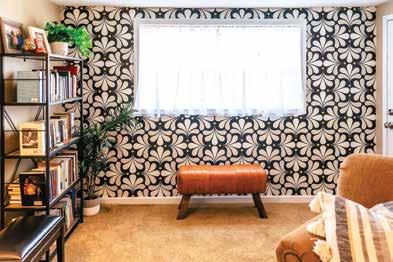 needed to be cleaned, painted and have new carpet and flooring installed. They also purchased a refrigerator. “The single-car garage had been converted into a den with a solid wall where the garage door had been,” Paula explains. “We installed a nice window for curb appeal outside and natural light inside.”