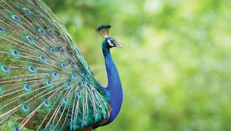 wardrobe, etc. – and she likes her green velvet sofa and whimsical art. “Mary Kate took a lot of what I already had and placed in ways which made the room more pretty, more appealing. She arranged for painters, drapes, turned a rug, and used a two-tier coffee table I was getting rid of. She brought in a crescent table, peacock feathers, pillows and interesting, quaint, eclectic things,” Paula adds.