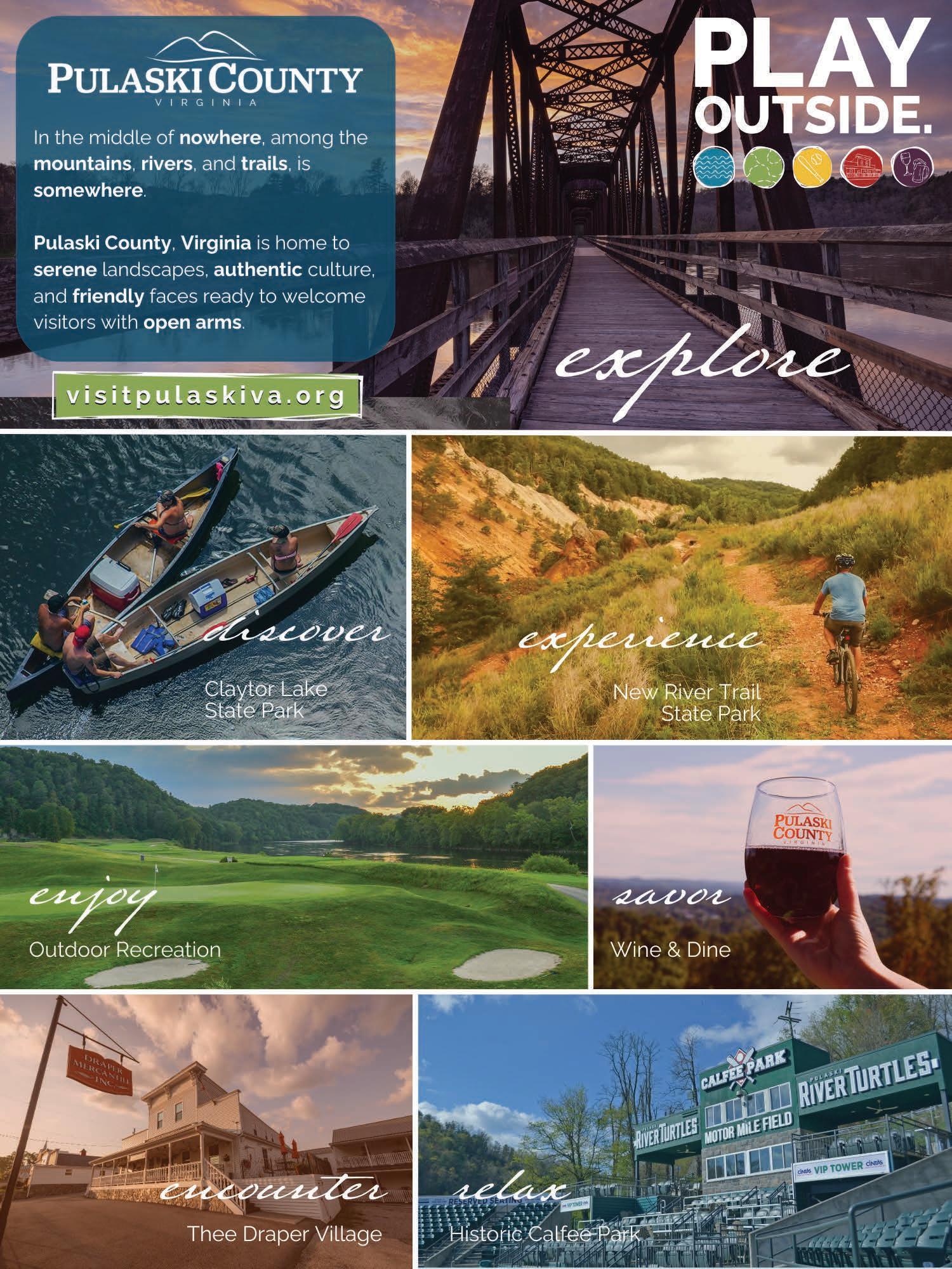 containers with wood lids at the farmer’s market, I might venture down to the Fort Chiswell Animal Park outside Wytheville to ride the safari bus and see zebras, buffalo, monkeys, alpacas, parrots and more. From there, it’s just a skip over to the Flying Flowers of Beagle Ridge, a 210-acre haven for butterflies, aka flying flowers. I might stop at Wilderness Road Regional Museum in Newbern and Thee Draper Village. Ah, so much to do, so little time.