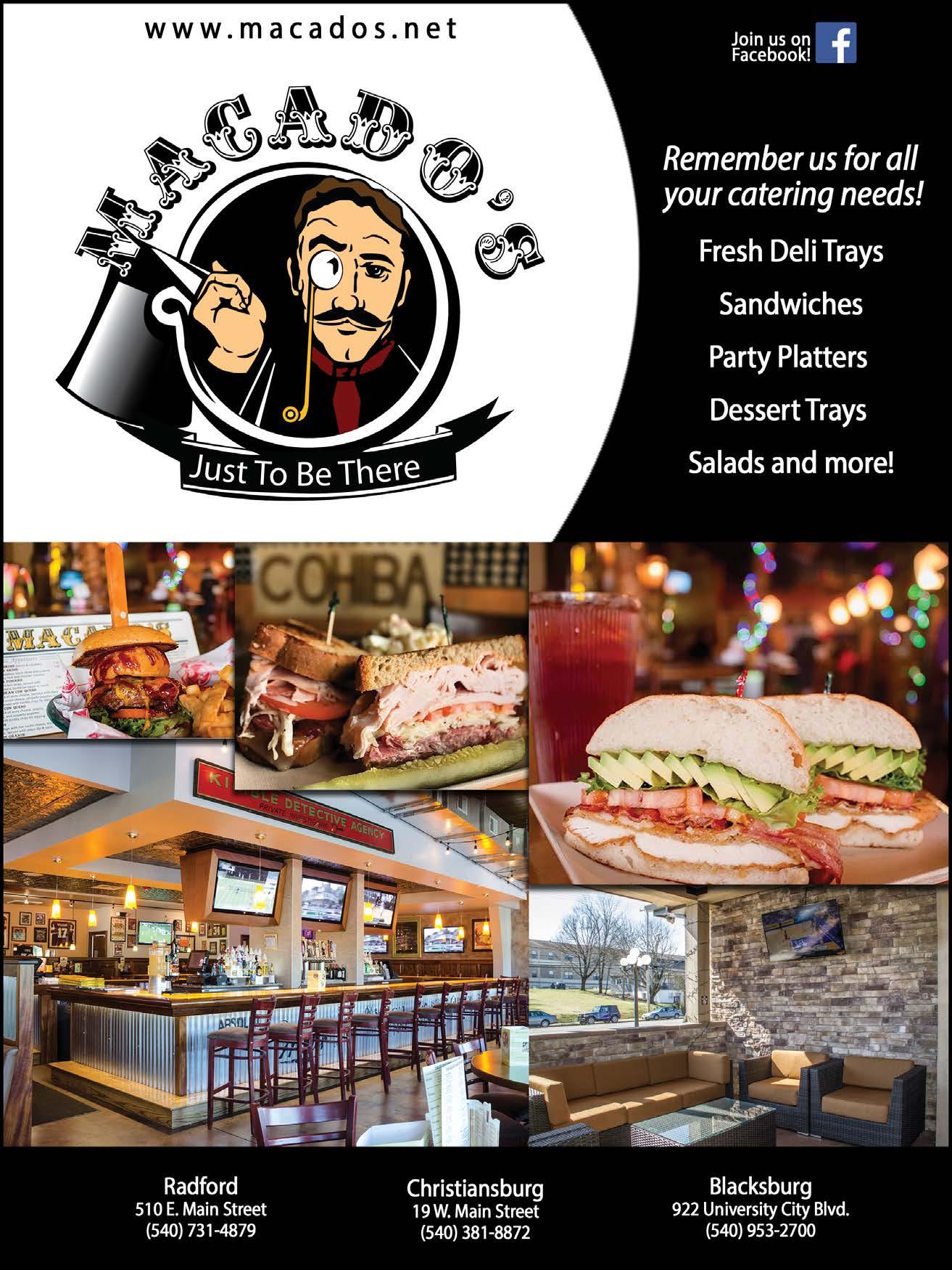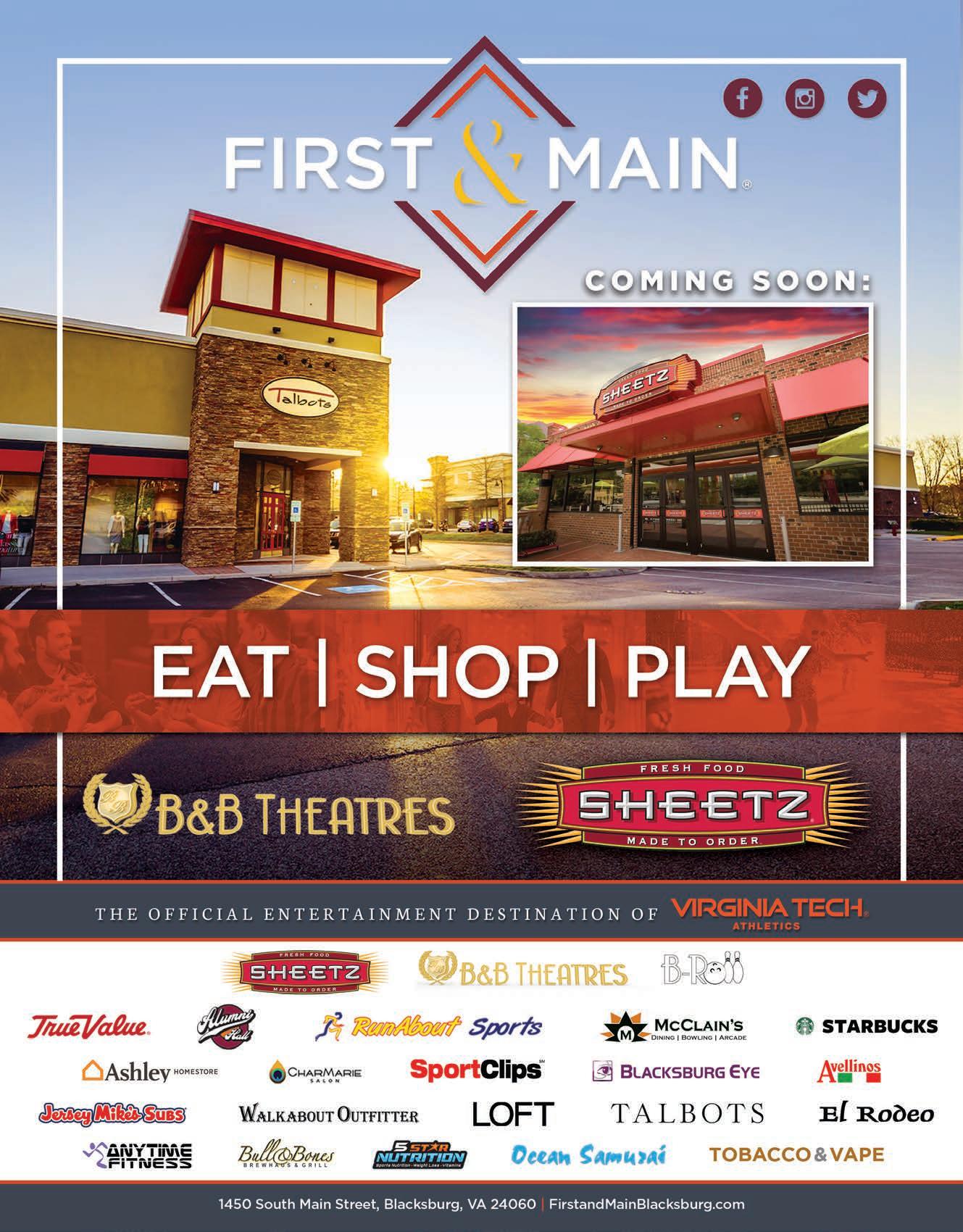 Allure Spa Cabo Fish Taco Clay Corner Inn Corner Market Eric Johnsen State Farm First & Main Giles County Tourism Gillies Inn at Virginia Tech Iron Tree Brewing Company Lilly Valley Inn Long & Foster Blacksburg Lyric Theatre Macado’s Miller off Main St. Moss Arts Center Nest Realty New River Art & Fiber P Buckley Moss Pearis Mercantile Pulaski County Raymond F. Ratcliffe Transportation Museum River Ridge Dermatology Sinkland Farms Stateson Homes Sunshine Tours The Oaks Victorian Inn The Swanson Morris Team Thee Draper Village Town of Christiansburg Walker Valley Market Wilderness Road Museum 6 17 35 31 13 55 15 23 27 33 17 8 17 45 27 3 2 31 27 23 47 13 19 33 5 56 35 37 4 53 29 13