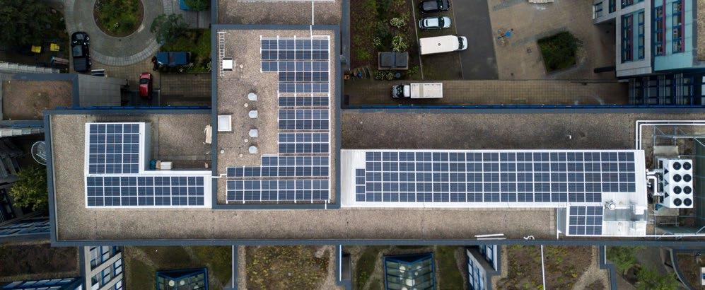 Einsatz von Wärmepumpen kann, dank der meist großen Gewerbedächer und damit großen Anlagenleistungen, gewinnbringend für die Klimatisierung von Büro- und Serverräumen eingesetzt werden sowie den Gas- bzw. Ölverbrauch deutlich senken.