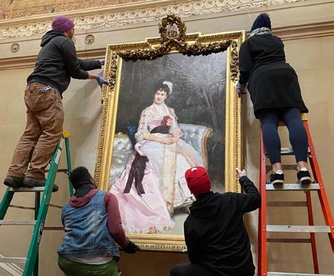 Portrait of Mrs. Cornelius Vanderbilt I I by Raimundo de Madrazo y Garreta recently returned to its traditional place above the Grand Staircase in The Breakers. The 1880 oil-on-canvas painting was made when she was 35 years old.