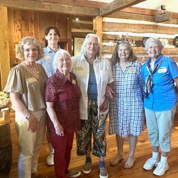 Greeted by a profusion of daisies and hydrangeas blooming in the front yard, followed by a warm welcome inside, the Dames from Montreat and Asheville—representing seven Corporate Societies—were excited to be together again for their fifth Summer Social. Judy Gregory’s home was filled with animated conversation, infectious laughter and the pure joy of being together for a morning gathering. Lovely refreshments appeared as if by magic on the dining room table, each offering provided by thoughtful guests.