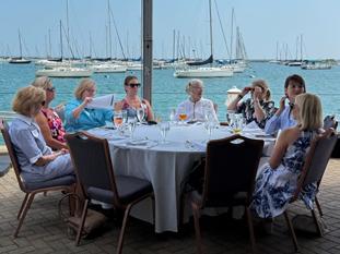 Carefree summer living is pretty hard to beat, but it’s all that much sweeter when you have a lakeside Dames Social to go with it! The weather held magnificently—not a drop of rain in sight. The lake, meanwhile, maintained its serene indifference to the casual social choreography on the Chicago Yacht Club patio. Friendship was very much the vibe at this delightful open-air occasion, where about 50 Dames and guests enjoyed a gourmet lunch and easy conversation. The afternoon ended as such afternoons do, with promises to meet again soon and an invitation extended to every Dame from around the country to join the Illinois Society for next year’s Social.