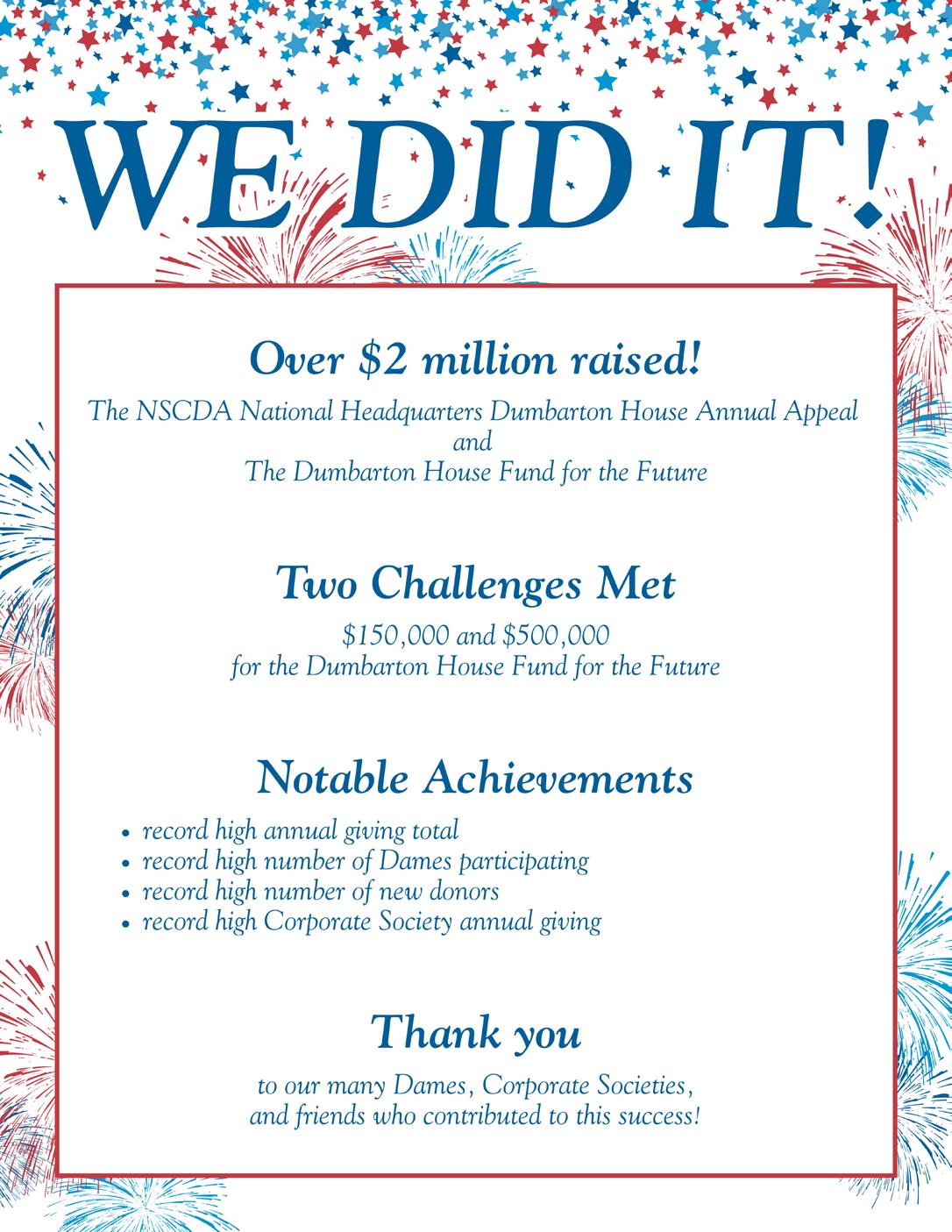 The NSCDA has always been defined by its mission of historic preservation, education, and patriotic service. But this year, we have also been defined by an extraordinary spirit of giving.