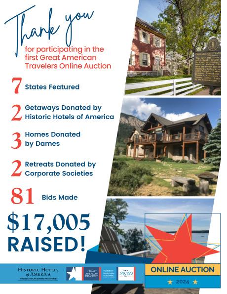 Participation by Society: Vermont achieved the highest participation rate at 60%, followed by the District of Columbia at 45% and Wyoming at 36%. In terms of total contributions, Georgia led with $610,322, followed by Arkansas at $147,720 and the District of Columbia at $145,107. In recognition of their exceptional leadership, each of these Societies received a case of champagne generously donated by Edith H. Stickney, NSCDA Vice President for National Headquarters Dumbarton House.