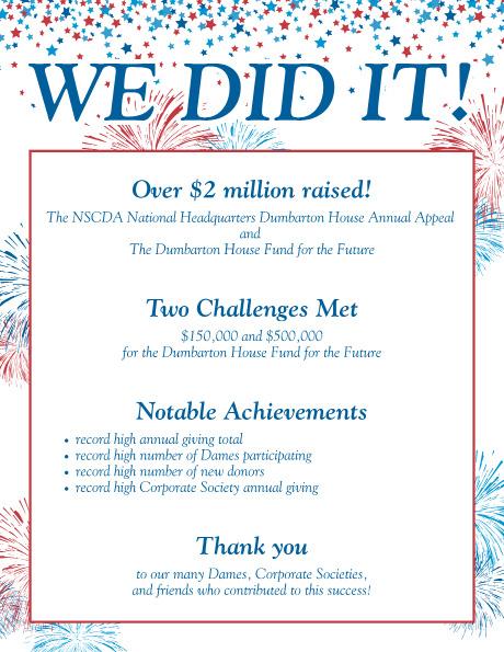 For the NSCDA National Headquarters Dumbarton House Annual Appeal and Dumbarton House Fund for the Future: