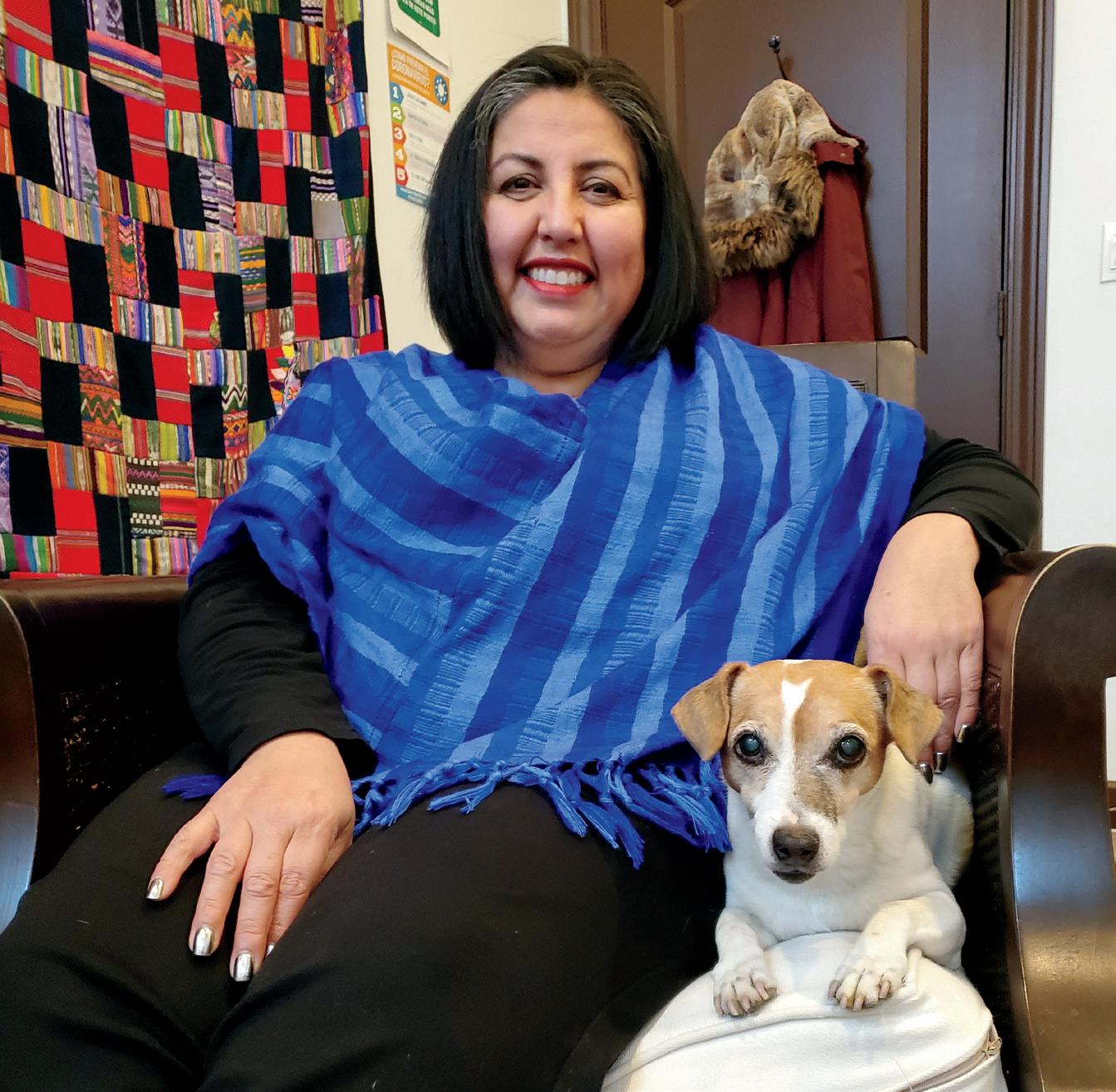 Snuggling next to her is Molly, her 15-year-old Jack Russell. Molly is a therapy dog who comforts patients during their therapy appointments at Centro Castillo for Personal and Family Wellbeing. Providing a safe and comfortable environment for patients to heal through psychotherapy has been a priority at the center ever since the NSCD alumna founded it 15 years ago.