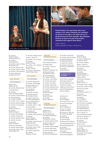 “Annual Giving is one opportunity when every member of our school community can contribute. No amount is too large or too small—the act of giving becomes the most impactful. We participate because we want to be part of the positive momentum that supports North Shore.” DAW N S T E E L E