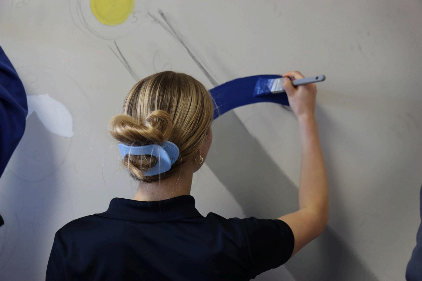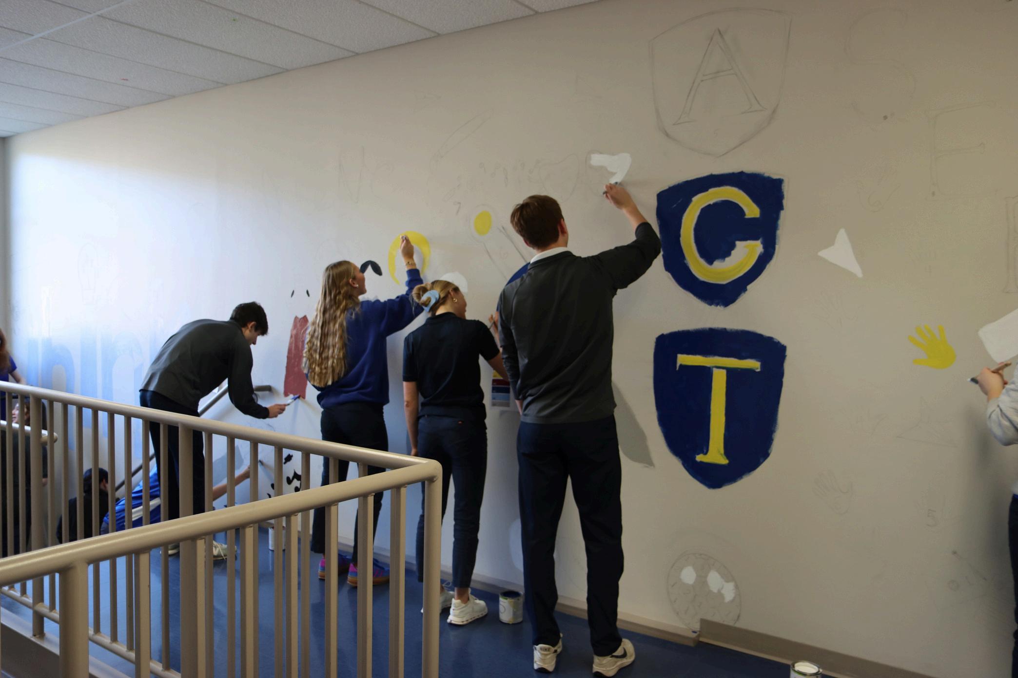 As part of CTK Days, students have been hard at work bringing color and creativity to our halls through a stunning new stairwell mural From the initial design and sketches created by student volunteers to the hands-on painting by classmates, this project is a true reflection of collaboration, school pride, and artistic vision. Each day, the mural grows more vibrant, a testament to the time, effort, and heart our students are putting into making Christ the King even more beautiful