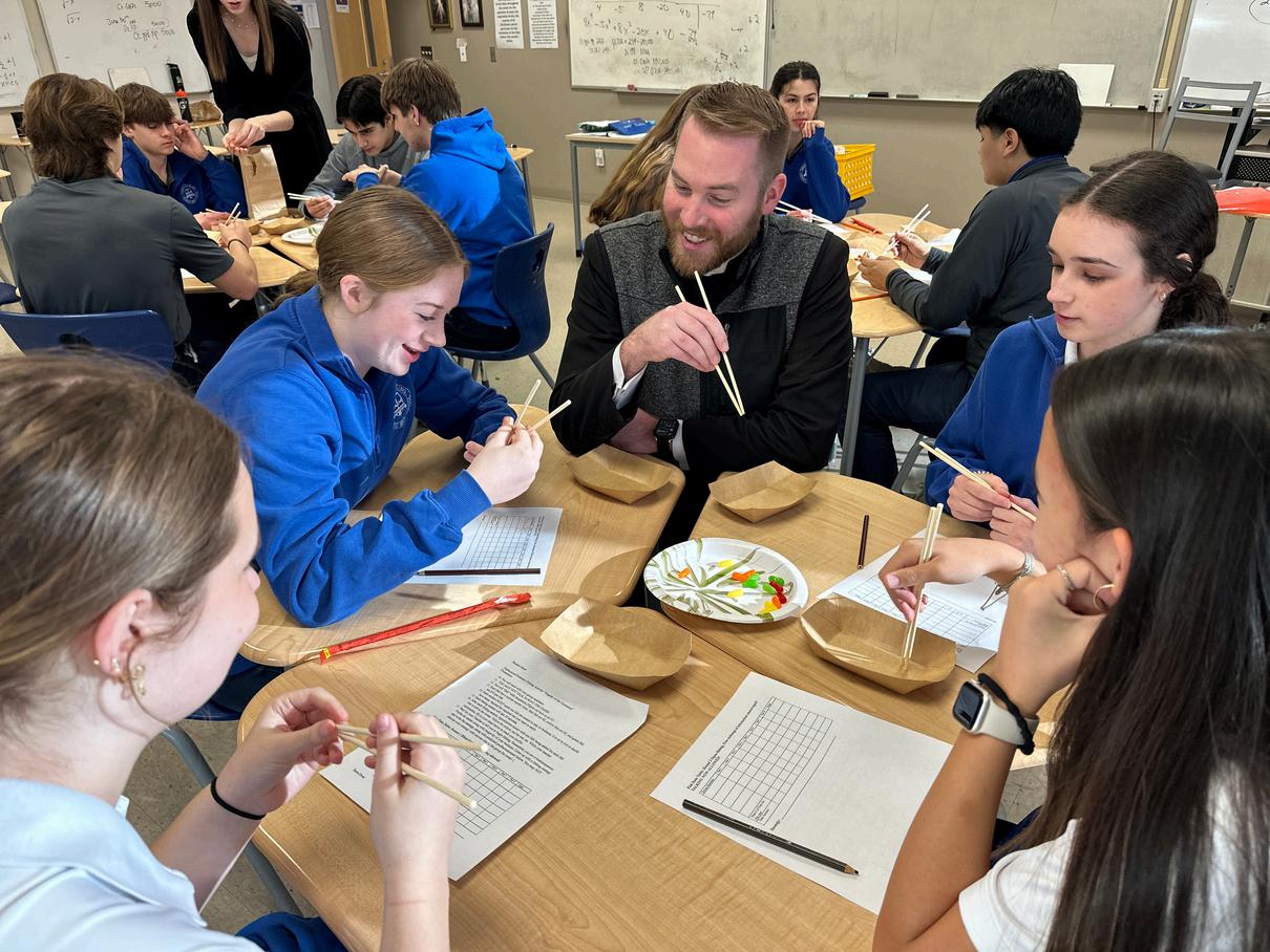 Students created Gospel-based videos and activity bags for Sacrament preparation for second graders. In addition, spiritual discussions and vocation talks encouraged students to explore how God is calling them to serve in their future lives, reinforcing our mission to believe sincerely and seek His guidance.