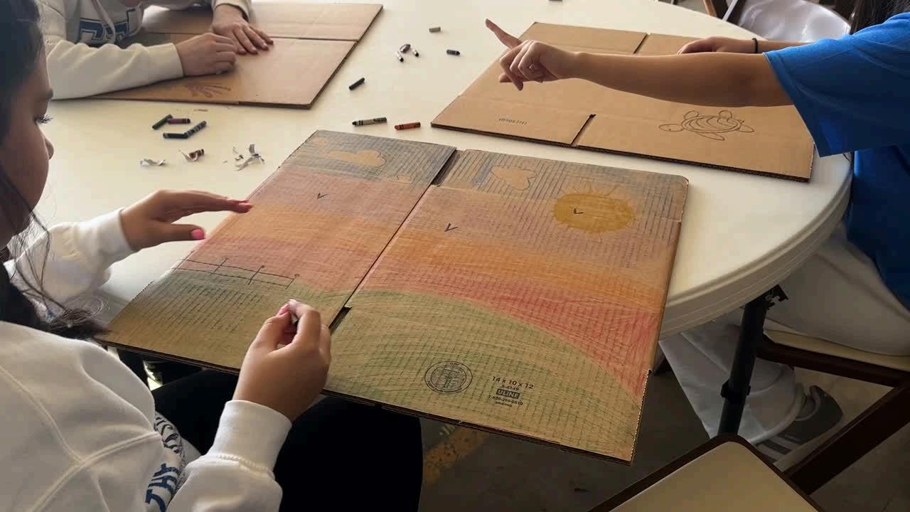 Along with packing meal bags, students had the chance to work together to decorate the boxes that the meals would be sent in. These boxes were colored with small images of love and happiness, bible quotes, and words of affirmation.
