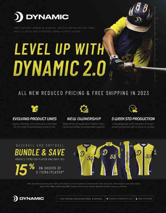 SPONSORED CONTENT NOW 6 STAHLS’ 10 PROLOOK 12 OrderMyGear 16 Chipply 18 CHAMPRO 20 Augusta Sportwear Brands 24 Founder Sport Group 26 Alphabroder 28 EG-PRO 32 SanMar Sports 34 ASICS 38 Cap America 42 Trigon Sports 44 Richardson 46 MaxBP MAY/JUNE 2023 <<3