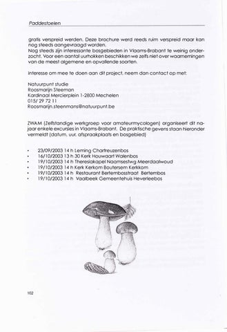 ZWAM (Zelfstandige werkgroep voor amateurmycologen) organiseert dit na jaar enkele excursies in V laams-Brabant. De praktische gevens staan hieronder vermeldt (datum, uur, afspraakplaats en bosg ebied)