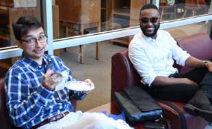 NSL 2L Patrick Ward, left, and Jesse Waterman ’12 discuss a case.