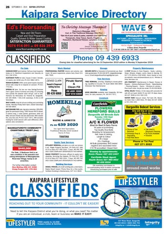 MAX’S WOOL shop for all your knitting and crocheting needs. Monday–Friday 9am–4pm, closed Saturdays 09 439 6604. MOTORHOME FOR sale, big price reduction, $59,000, great for permanent living. 1993 Nissan RM10 diesel, 9 metres long, 2 solar panels, generator, slide out BBQ, full size shower, full size island bed, little cracker fire, very tidy unit, Ph 021 0227 3371. Will consider trading for small caravan with cash difference, other options also considered.