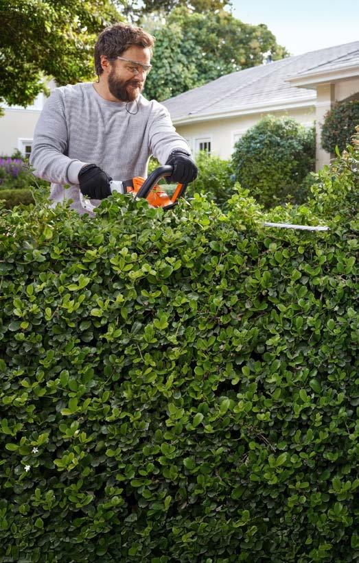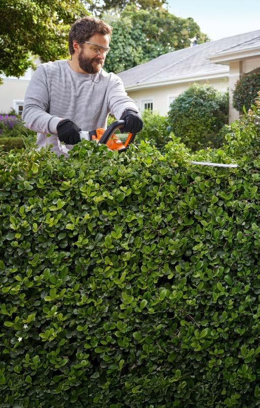 Can cut hedges up to 5 metres high, top at 3.5 metres and fit down small accessways (2 metres and wider).