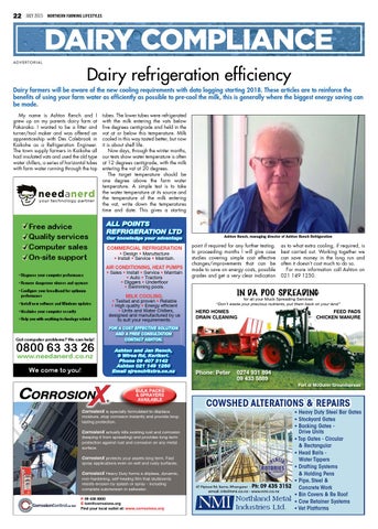 • Heavy Duty Steel Bar Gates • Stockyard Gates • Backing Gates Drive Units • Top Gates - Circular & Rectangular • Head Bails Water Tippers • Drafting Systems & Holding Pens • Pipe, Steel & 47 Pipiwai Rd, Kamo, Whangarei - ph: 09 435 3152 Concrete Work email: info@nmi.co.nz - www.nmi.co.nz • Bin Covers & Re Roof Northland Metal • Cow Retainer Systems Industries Ltd. • Vet Platforms