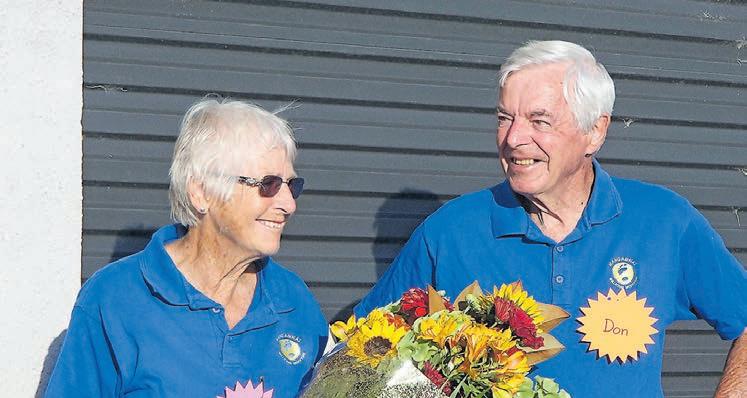 p Mangawhai Walking Weekend founder Jean Goldschmidt with her husband Don at their farewell in