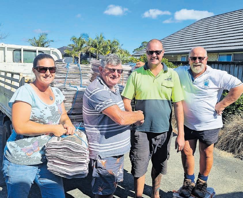 If people can save their newspapers, they can be dropped in to us at 13 Inverness Lane, Waipū. Please do not give us cardboard, glossy inserts, shoes or clothes — we just want newspaper. We also hope farmers can save us their used baling twine for us to tie our paper bundles.