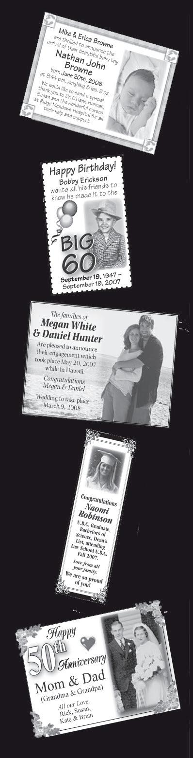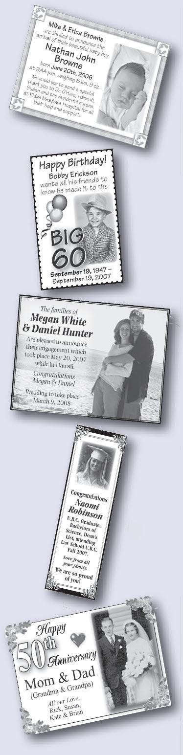 To place an Obituary, In Memoriam, or Memorial Service, please call Nadia at 604-653-7851 or email nmather@glaciermedia.ca please call Adam at 236-889-6595 or email ahogan@glaciermedia.ca call Adam at 236-889-6595 or email ahogan@lodestarmedia.ca