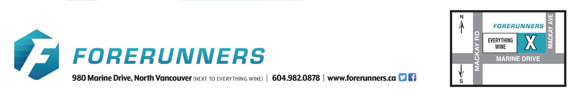 980MarineDr NorthVancouver 604.982.0878 www.forerunners.ca