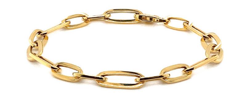 Thissophisticatedovallinkgoldbraceletisthe epitomeofrefinedsimplicity.Itssleekdesignand high-qualitycraftsmanshipmakeittheperfectgift. $2025