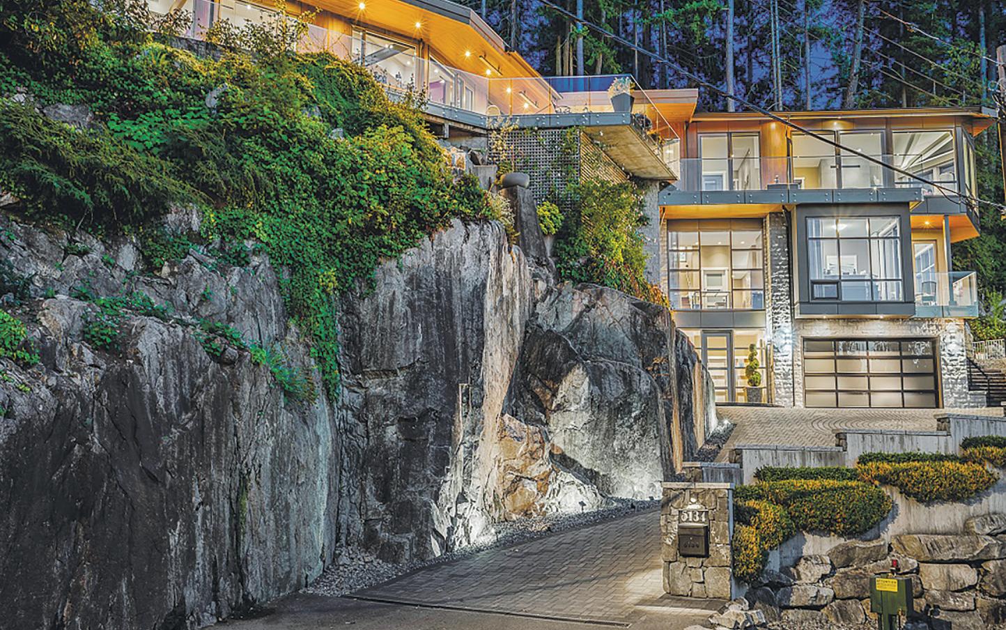 is 5,000 sq. ft. dream homeisone of the most unique properties in West couver. Set at the end of aquiet road, this waterfront peninsula has nearly feetofshoreline that wrapsaround the home and its fortress-like concrete ation walls! Enjoy the heated oceanside swimming pool and secluded beaches watchingcaptivating ocean wildlife. The views and sunsets of Howe Sound, islandsand beyond are magical. This home was built 4years ago, constructed steel and glass and the latest technology. Massive walls of windows to maximize views from every angle. 5bedrooms and 5baths, avery well equipped gym, and about 3,000 sq.ft. oceanside terraces, gardens and lawn.