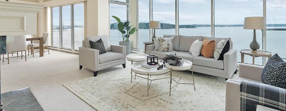 This waterfront apartment hasaviewtobeatall views Thelocation is the bestinWV. Youcan look left orright and see all the shorelines. Features 2750 sq. ft. plus 300 sq. ft of balconies, 3bedrooms and office plus afloor plan that is perfectfor acaregiver.Two large parking stalls and an extralarge 12 x9storage room. If thereisone apartment youshould see this is it. Come and see at my open on Sundaybetween 2-4