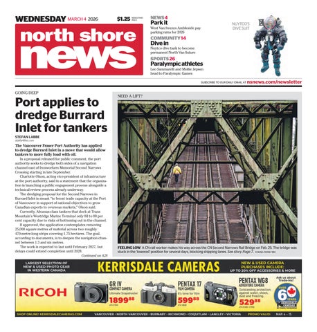 ThedredgingproposalfortheSecondNarrowsin Burrard Inletismeant“toboosttradecapacityatthePort of Vancouverinsupportof national objectivestogrow Canadianexportstooverseasmarkets,”Olson said. Currently,Aframax-classtankersthatdockat Trans Mountain’s WestridgeMarine Terminal onlyfillto80per centcapacityduetorisksofbottomingoutinthechannel.
