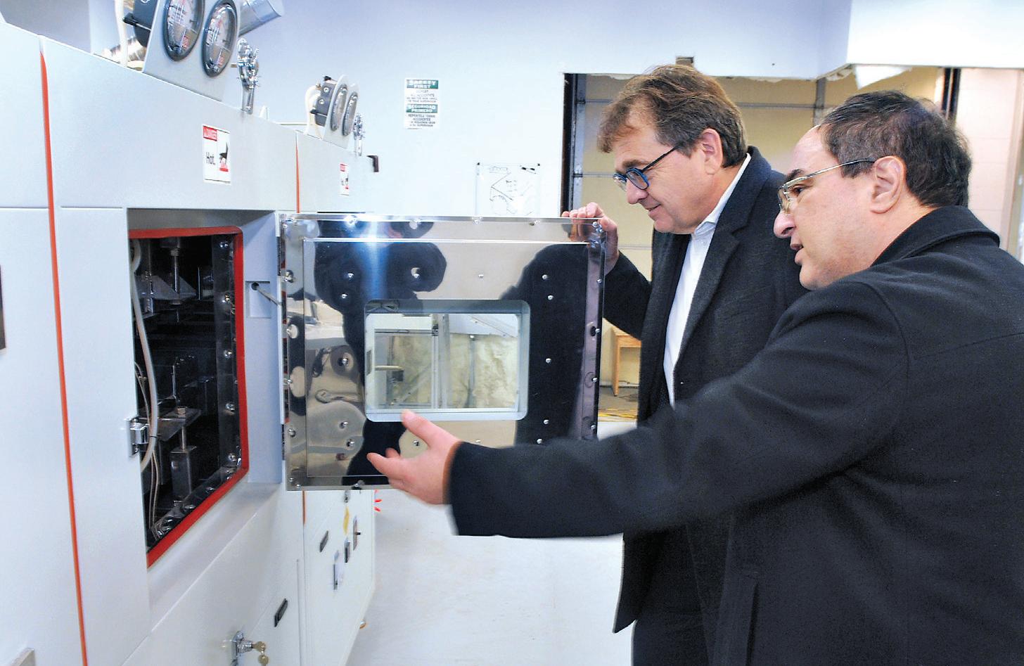 Hydron Energy CEO Soheil Khiavi gives North Vancouver-Capilano MP Jonathan Wilkinson a tour of the company’s renewable natural gas research and development facility in the North Shore’s Lynn Creek area Oct. 31. PAUL MCGRATH / NSN