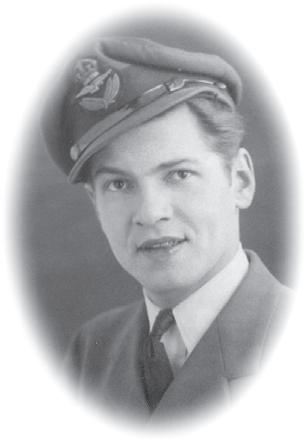 Enlisted with the RCAF in 1942, trained as an air gunner, and joined the RAF’s 218 Gold Coast Squadron. Shot down over the Rhineland in 1943, captured, and held at Luftstalag 6 until war’s end.