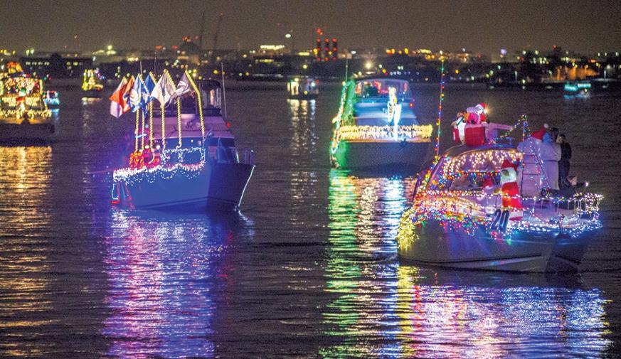On Dec 3 the boat parade will depart from Burrard Yacht Club at 6 p m and cruise over to Lonsdale Quay in a long, slow loop, docking at around 6:10 p m After a stop at the waterfront, the parade will continue across the water to Coal Harbour before returning to the yacht club.