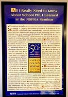We reported that the Seminar 50th Anniversary poster, All I Really Need to Know About School PR, I Learned at the NSPRA Seminar will be distributed at the Denver Seminar.