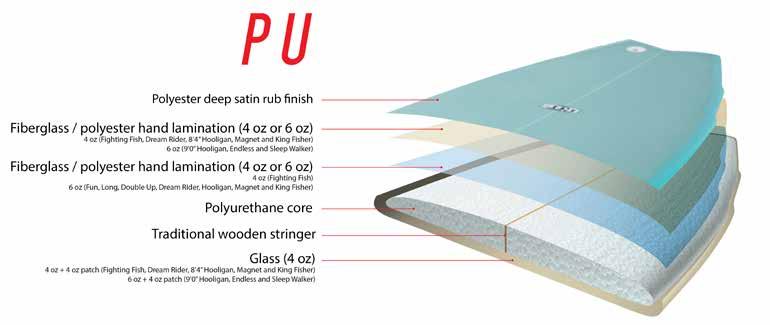• 2 stringers on 6’6 / 7’0 / 8’0 / 3 stringers / 9’0.