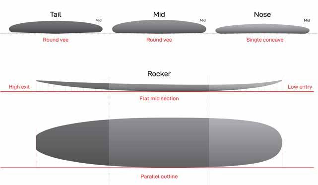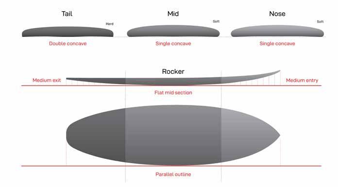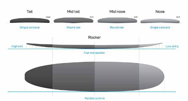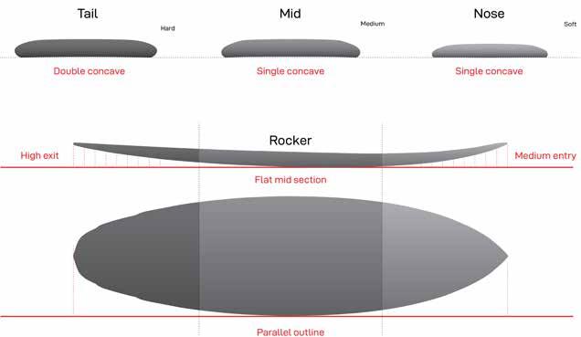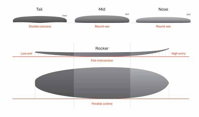 • CNC-cut and hand-finished EPS core with integrated fibreglass-reinforced bamboo stringers.
