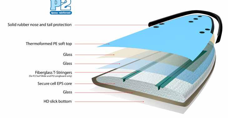 • All Surf Wide and Longboards in P2 Soft construction come with 2 additional fiberglass T-Stringers for maximum strength.