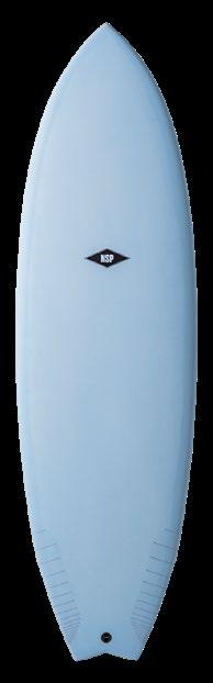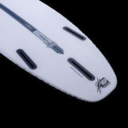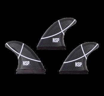 The Pro-9 comes in a 4+1 fin configuration enabling you to be creative in your setup as a quad or thruster. NSP positioned the Surf 10 fin box slightly further back, to enable a 2+1 setup. The Pro-9 comes with FTU boxes for its sidefins, making it com- patible with Futures® Fins (fins not included).