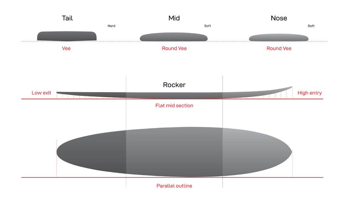 Beautiful outlines combined with relaxed nose rockers, classic roll to V with double concaves in the tail combine to give you that “easy in” with loads of rail-to-rail performance.