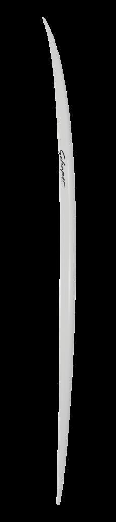 The Pro-9 is a longboard with as much shortboard crammed into it as possible. Carl Schaper will often point out the back-third of the board, as it fits almost perfectly on his 6’2” step up, with the same thickness, tail dimensions and rails. The bottom has a soft roll to V in the middle, running into V with a double concave in the tail.