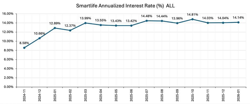 Since its introduction in November 2024, the NSSF Smartlife Flexi has averaged an annualized interest rate of over 13.25%, with the highest being 14.81% in October 2025.