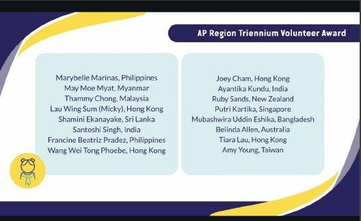 超惠團長在過去三年積極參與國際女童軍相關事務,常代表台灣出席各項重 要活動,並持續在亞太區層級提供服務。她不僅展現出專業及熱忱,也不斷地讓台灣女童軍有 露出的機會。今年在女童軍亞太會議中,更榮獲了「亞太區志工服務獎」,讓女童軍的伙伴們 能夠更有機會在世界伙伴眼中留下美好的印象。